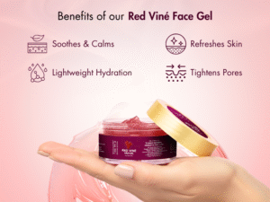 Want radiant and glowing skin every morning? Teena’s Red Viné Face Gel contains hydrating ingredients that lock in moisture and refresh tired skin. It is rich in antioxidants and helps fight early signs of ageing. Overall, it is lightweight and non-greasy and provides a perfect solution for overnight skin nourishment.