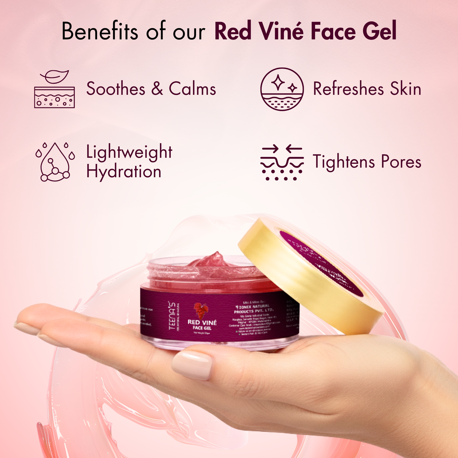 Want radiant and glowing skin every morning? Teena’s Red Viné Face Gel contains hydrating ingredients that lock in moisture and refresh tired skin. It is rich in antioxidants and helps fight early signs of ageing. Overall, it is lightweight and non-greasy and provides a perfect solution for overnight skin nourishment.