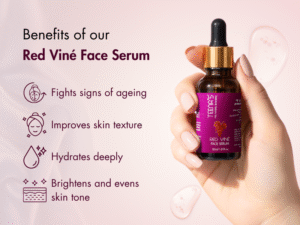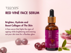 Find out the secret to youthful skin with Teena’s Red Viné Face Serum . It fights the signs of ageing while brightening and evening out your skin tone for a flawless glow. It also provides deep hydration and nourishment that improves the texture and smoothness. Overall, it is perfect for fighting irritation and redness and providing a healthy skin renewal.